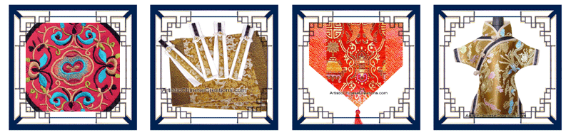 Please click on the below categories for more Chinese tableware offerings including embroidered dinner sets, dragon and phoenix table runners, tie dye table covers, dragon wine bottle covers, "Good Fortune" tissue box covers, embroidered coasters, Chinese matching sets, Chinese chopsticks and Chinese bowls...