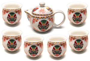 > Chinese Porcelain Tea Set - Chinese Opera Masks #8